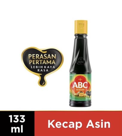 Kecap Asin ABC, terbuat dari perasan pertama kedelai pilihan dengan rasa asin yang gurih. Untuk masakan yang lebih kaya rasa, siapapun yang masak. Kecap ABC, disukai oleh 9 dari 10 ibu di Indonesia Detail: - Perasan Pertama Kedelai Pilihan - Lebih Kaya Rasa - Dengan rasa asin yang gurih Komposisi: Sari Kacang kedelai (54%) (mengandung gandum (3.8%)), air, garam, gula, penguat rasa (mononatrium glutamat dan inosinat guanilat), pengawet natrium benzoat